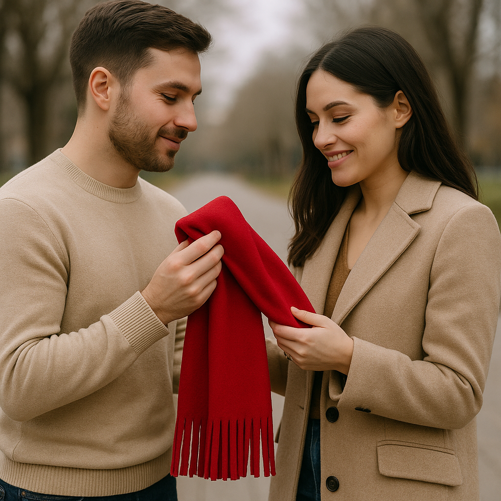 سكارف ميكاسا ماشي غير شال… هِي اللمسة اللّي كتهدي الدفء، الجمال، والحبّ في لحظة وحدة